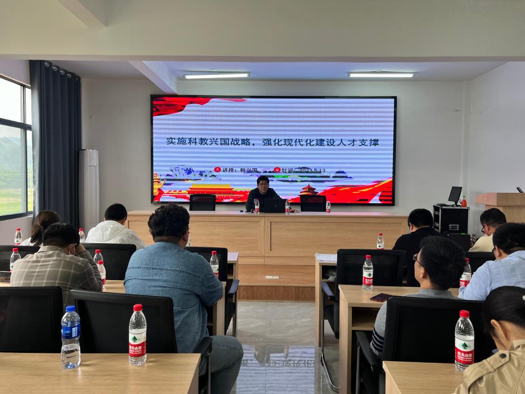会上,学院党委书记谢雄辉部署安排了主题教育实施方案,结合学院实际领学了《新的发展理念引导高质量发展》,他强调新发展理念是引领高质量发展的科学指引,要深刻领悟创新、协调、绿色、开放、共享的丰富内涵,要求全体教工结合岗位职责坚定不移推动高质量发展。学院行政主要负责人韩兴国从剖析科技、教育、人才工作特点等方面入手领,聚焦学院发展与人口增长的关系、教学与科研的关系、教学组织涣散软弱等问题,做了题为《实施科教兴国战略,强化现代化建设人才支撑》辅导报告。