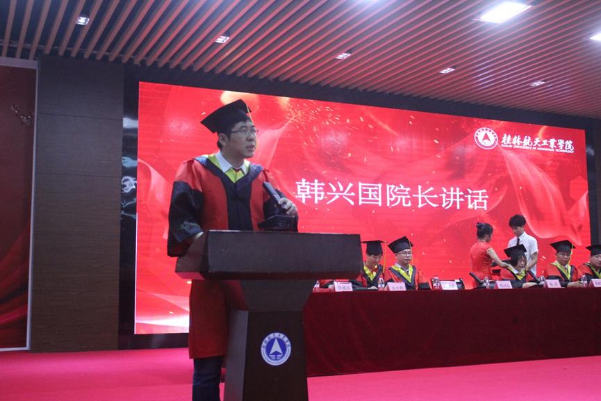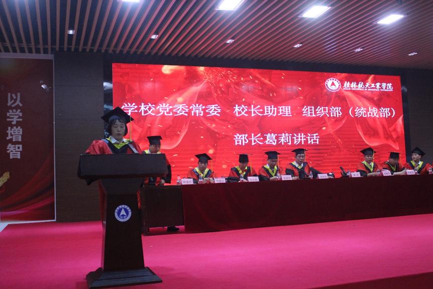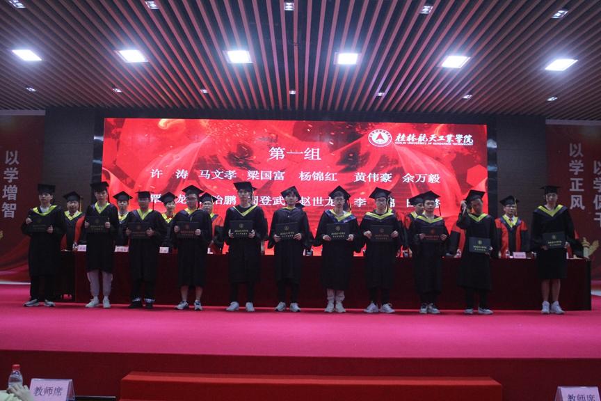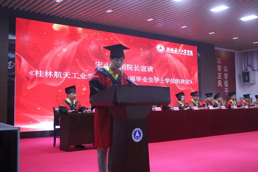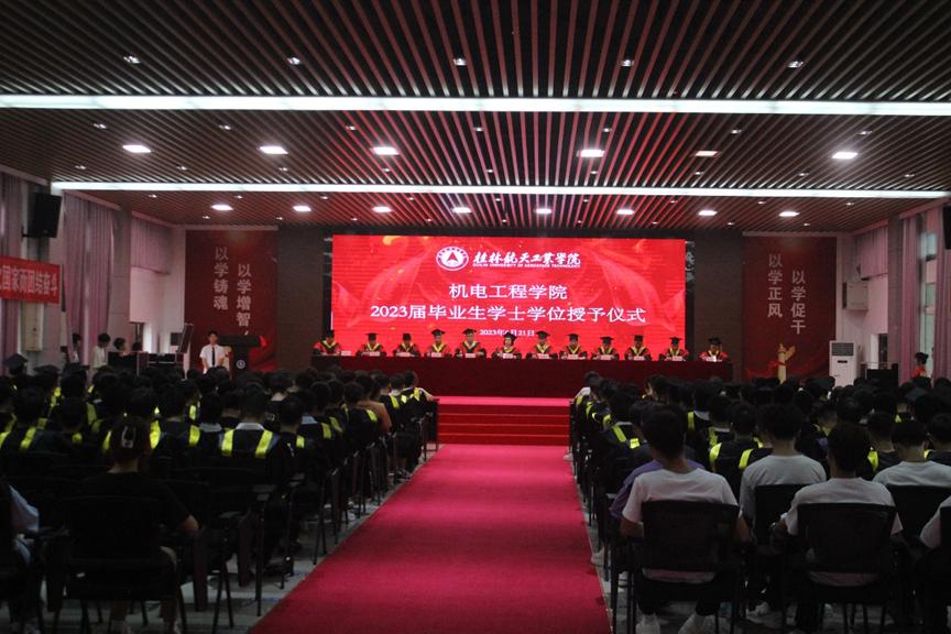 学院院长韩兴国发言,希望毕业生们能不断探索创新的提高专业素养,努力做一个自信出色的机电人。在逆境中善待自己,顺境中善待别人,讲述桂航新故事,开创自己人生崭新的篇章。学院副院长宋小辉宣读学校关于授予学生学士学位的决定。学士学位授予团导师先后为16组毕业生代表授予学士学位,正冠扶苏,并合影留念。