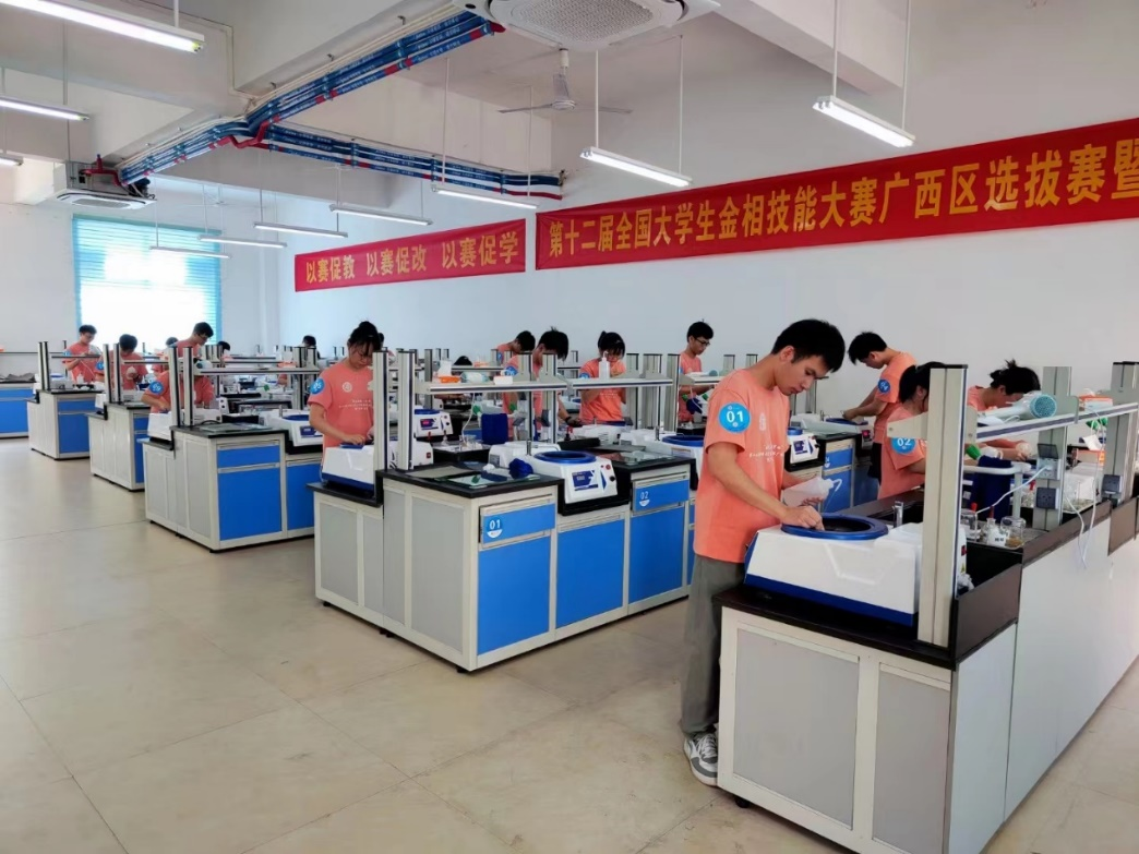 学院高度重视全国大学生金相技能大赛广西区选拔赛。自发布比赛通知起,共有100多名学生报名,为做好本次大赛参赛工作,在4个月的备赛过程中,学院先后组织了笔试比赛和校内选拔赛。学院指导老师利用休息时间对选手进行深入培训及指导,参赛选手在课余时间和假期刻苦训练,不断提升个人技能水平和综合素质。