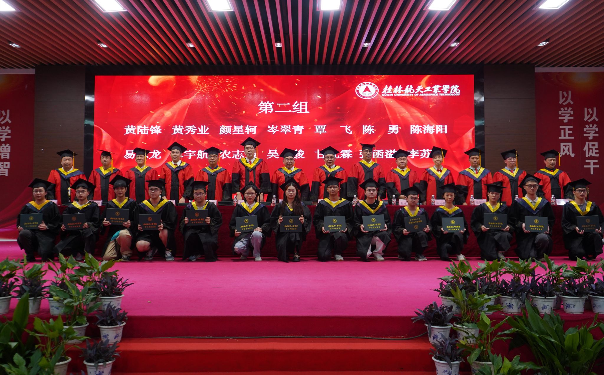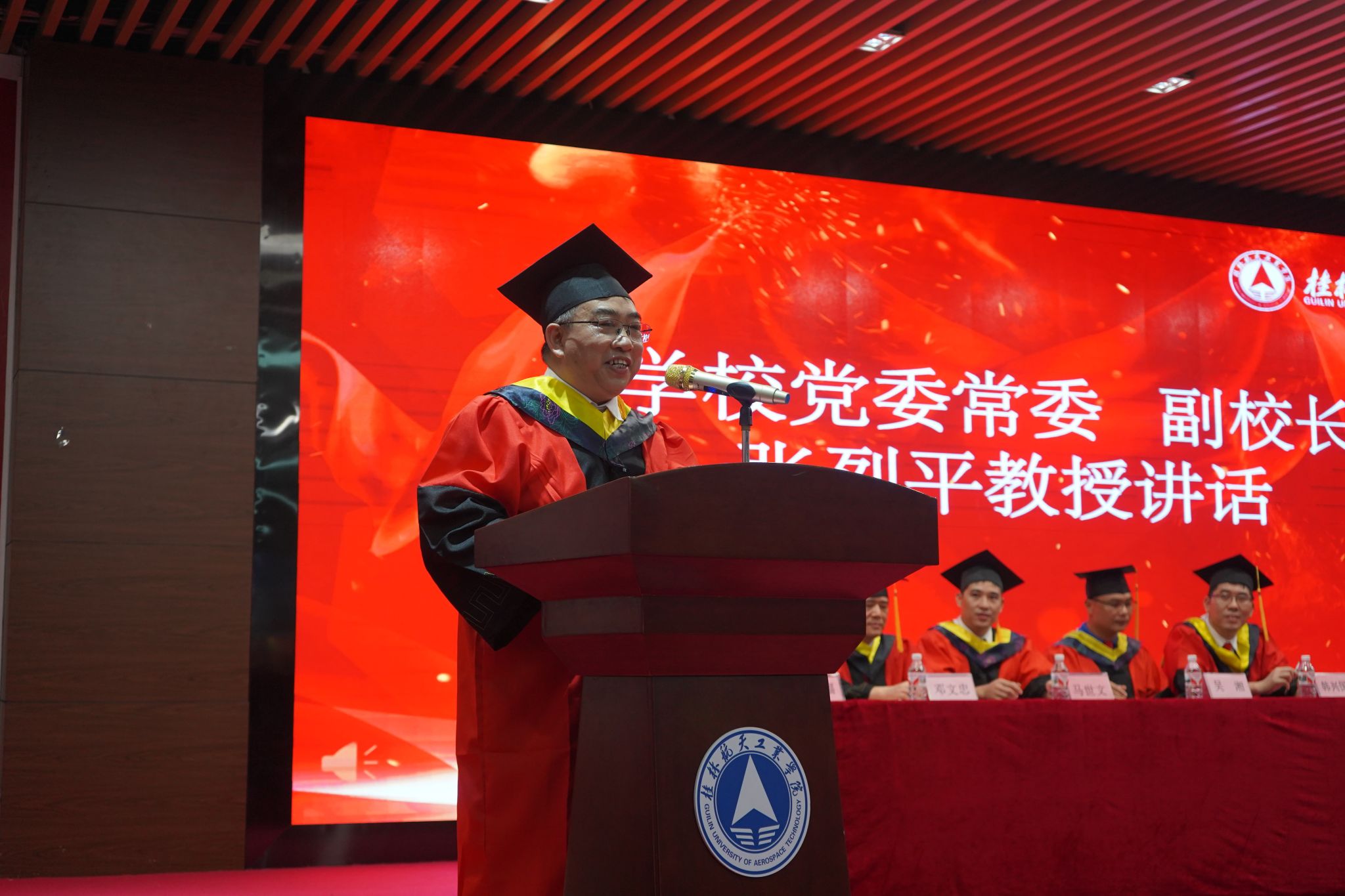 在庄严的国歌声中,学位授予仪式拉开帷幕。张烈平代表学校向毕业生们致以最热烈的祝贺和最美好的祝福,他寄语毕业生们,站在新起点,既要志存高远,更要脚踏实地,希望毕业生们坚守“尚德博学,慎思笃行”的桂航校训,不忘初心,砥砺前行,将个人理想与国家强盛、民族复兴紧密联系起来,以行动书写使命担当。同时,他希望毕业生们能够承载学校荣光,要传承“艰苦奋斗,自强日新”的桂航精神,敢于突破传统,勇敢无畏地前行,用创新思维和方法解决问题,不断超越自己,让青春在奋进新时代的璀璨征途上绽放。
