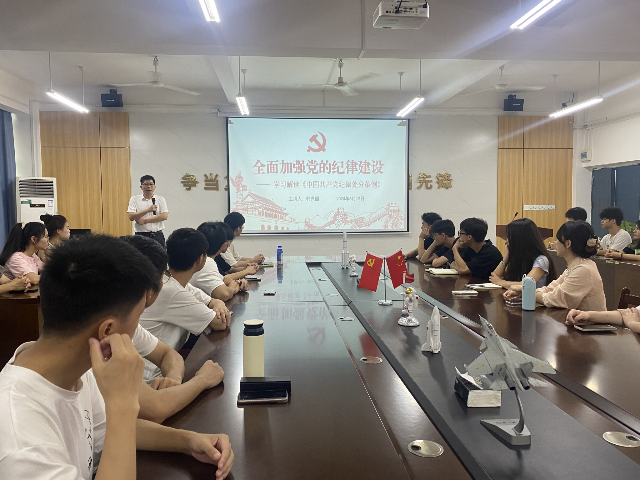 为深入学习《中国共产党纪律处分条例》,6月12日,bevictor伟德官网于巡天楼229会议室召开“全面加强党的纪律建设”的讲座。本次讲座由bevictor伟德官网院长韩兴国主讲,各年级党员代表参加聆听。