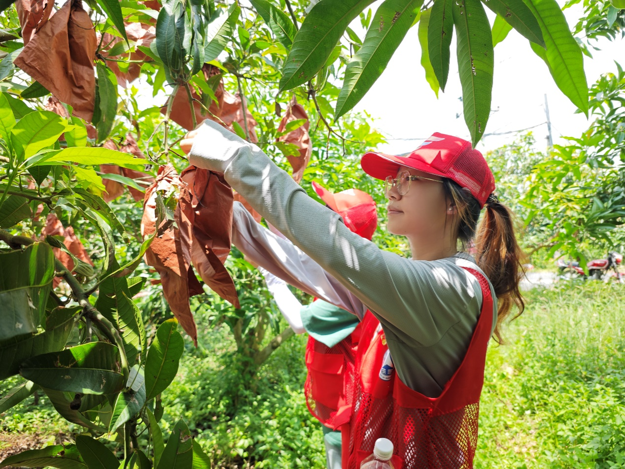 图为团队成员在芒果种植基地采摘芒果